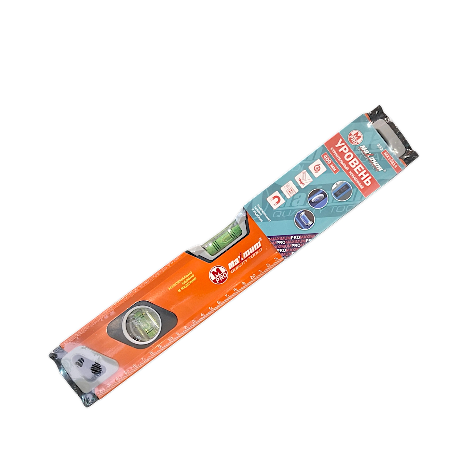 Уровень строительный с зеркальным глазком 400 мм от "Maximum Quality Tools" имеет первый уровень точности показаний ≤ 0.05мм/м.