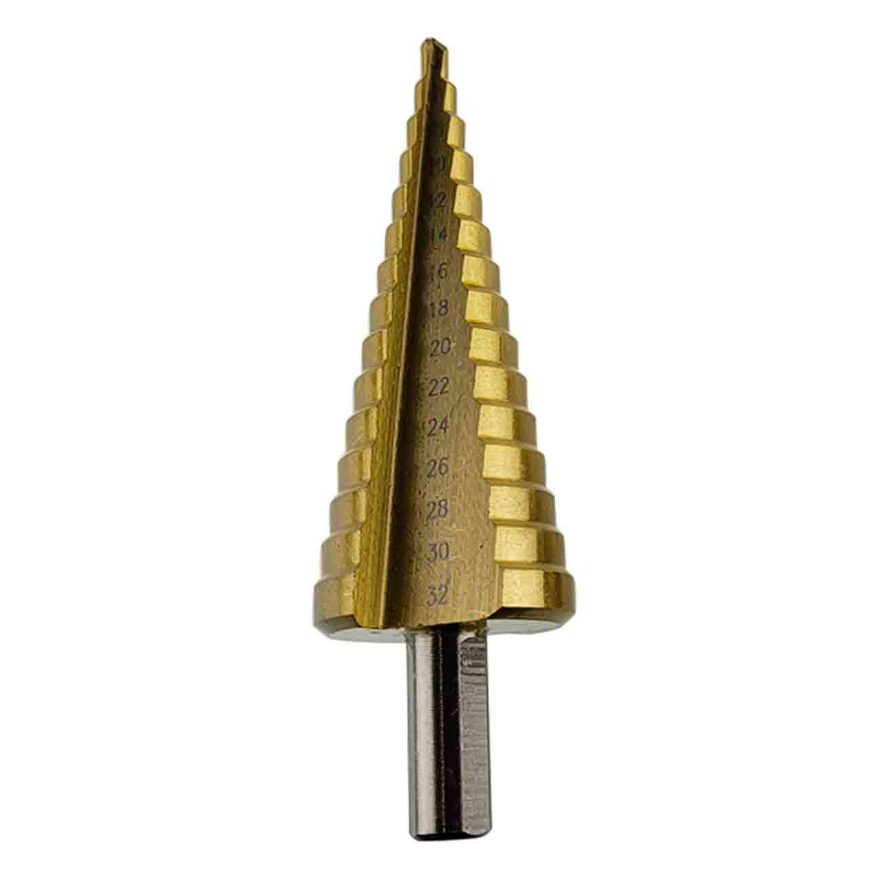 Ступени имеют удобную маркировку фактического диаметра. Популярной сферой использования ступенчатого сверла по металлу является шлифование уже готового отверстия. Высокая скорость сверления и качество кромки достигается даже если металл слишком тонкий. Острый наконечник с легкостью входит даже в самый твердый металл. Сверло с титановым покрытием имеет 9 ступеней с шагом в 2- 3 мм, которые помогают создать оптимальный и точный размер отверстия.